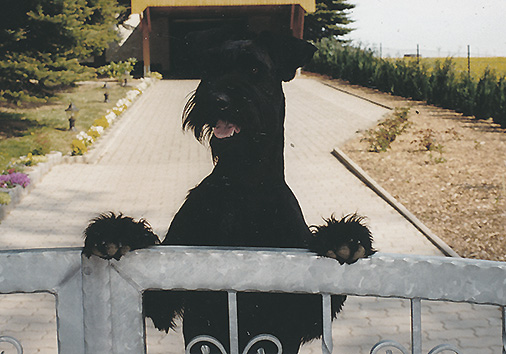 Guste v. Nordexpress (französischer Name "die Erhabene") HD A2 frei von erblichen Augenkrankheiten V1-Bew. AD, BH, VPG 1, FH 2 Kbsg., Klub-Ch., Dt.Ch. BOB - Rassebeste der Schau in Hamburg-Bergedorf 2002 BIS - schönste Hündin der Schau in Hamburg-Bergedorf 2002 Teilnehmer PSK-FH-Landesmeisterschaft Vize-PSK-FH-Landesmeister 2006 Riesenschnauzer-Zuchtstätte "vom Nordexpress" |